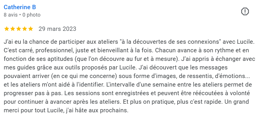 C’est pour cela que j’ai créé les ateliers « Communiquez avec vos guides » : pour que chacun puisse retrouver, ou découvrir, ce lien de communication avec les énergies qui l’accompagnent.